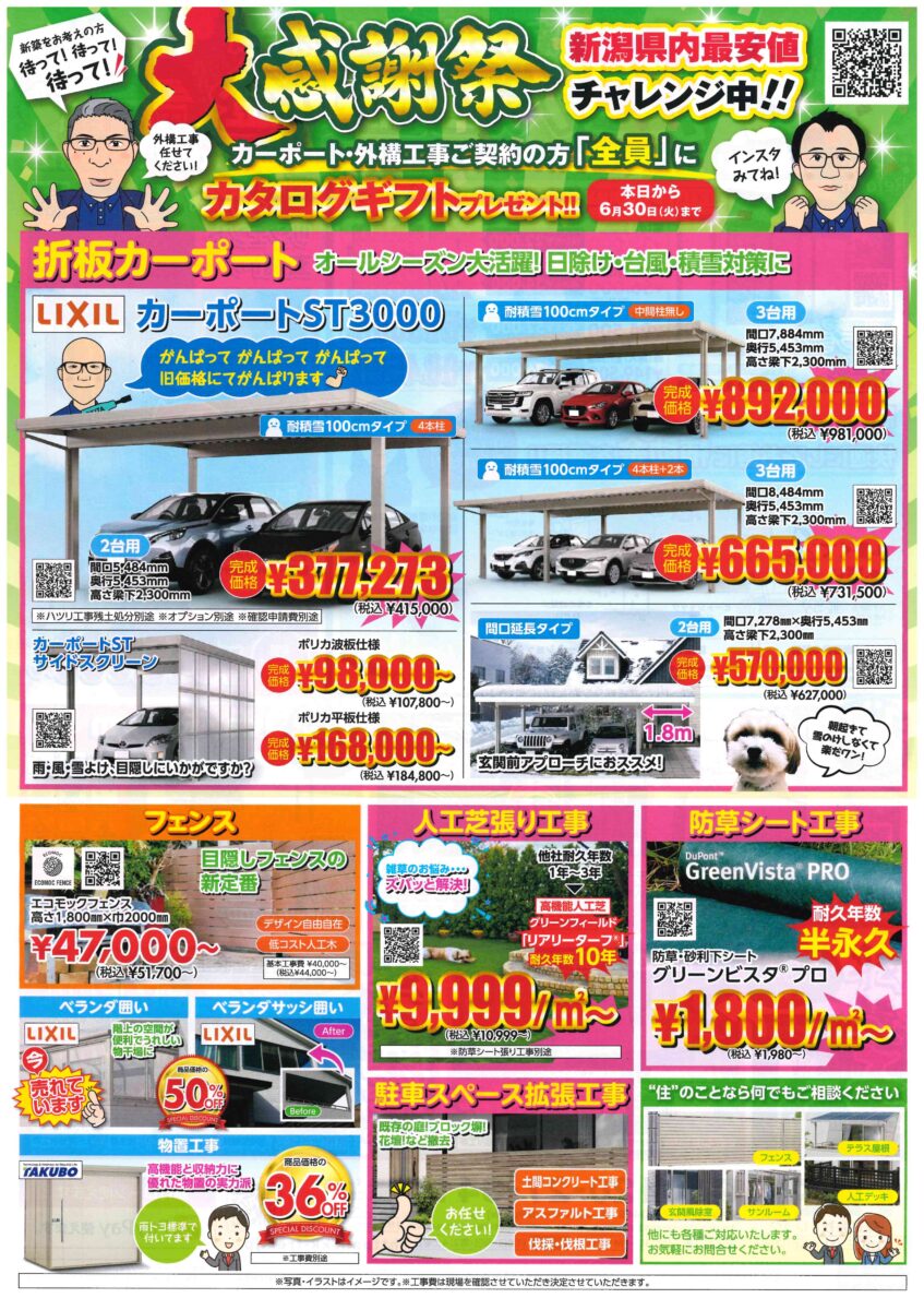 カーポート・外構工事ご契約の方「全員」に